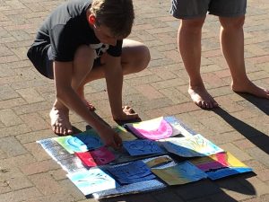 Du kannst dich tänzerisch und malend ausprobieren. Wir tanzen zu den Elementen Wasser und Erde. Wir gestalten eine Körperschablone aus Papier und nutzen sie für den farblichen Ausdruck unserer Empfindungen.