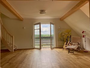 Die Workshops finden an einem ganz besonderen Ort statt: im Blauen Haus am Röblinsee – nördlich von Berlin, mitten in der Natur, direkt am Wasser. Hier kannst du abschalten, zur Ruhe kommen und dich ganz auf dein kreatives Schaffen konzentrieren. Ob im gemütlichen Atelier, im lichtdurchfluteten Seminarraum, auf der Terrasse mit Seeblick oder draußen – an der Badestelle, auf Wiesen und im Wald bis zum Stechlinsee: Die Umgebung inspiriert.